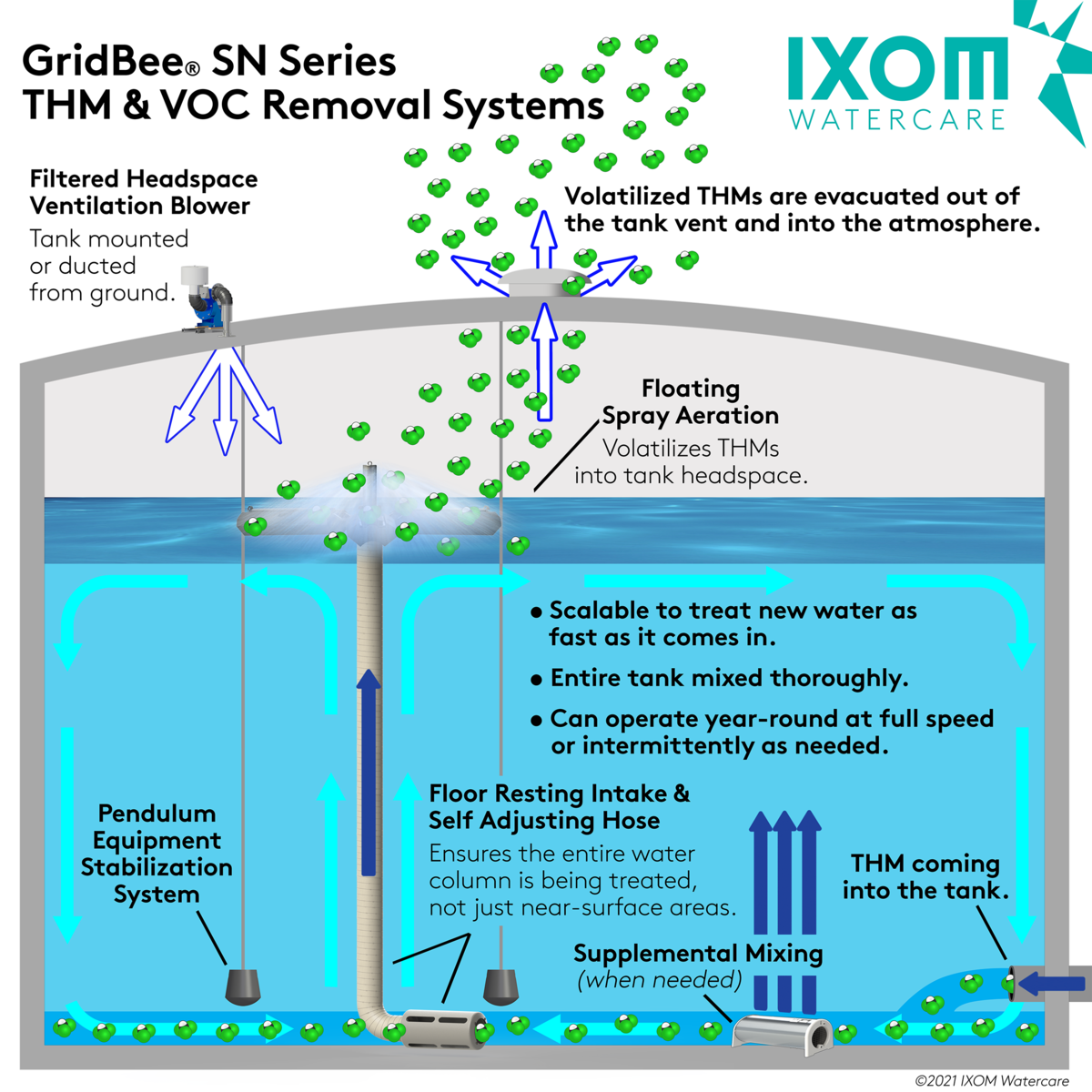 IXOM Watercare’s SN Series system provides a proven solution for water utilities working to reduce THM concentrations inside potable water storage tanks. By applying the principles of Henry’s law, mass transfer, and engineered forced aeration, this system helps utilities maintain compliance with regulatory standards while preserving disinfectant residuals and operational simplicity. The SN Series stands as an effective and adaptable technology for addressing THM challenges in municipal water systems.